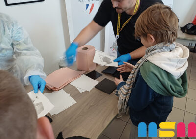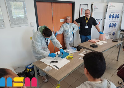 Encadrés par leurs professeurs d’éducation physique et sportive, les enfants ont participé à sept ateliers variés : démonstration de la brigade canine, initiation au secourisme, découverte des techniques de la police scientifique à travers une scène de crime factice, ainsi qu’un atelier consacré aux armes et équipements utilisés par les forces de l’ordre.