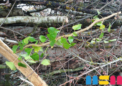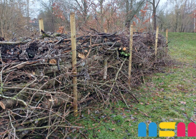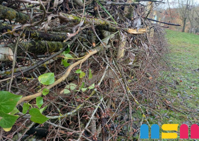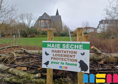 Composées de branchages maintenues entre des piquets en bois, cette barrière naturelle offre un refuge à la faune sauvage (oiseaux, insectes, petits mammifères) et permettent à plusieurs espèces d’oiseaux de nidifier. Elle permet également de recycler les matières organiques (branches et troncs coupés), de limiter l’érosion des sols et de réduire l’impact des vents forts.