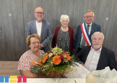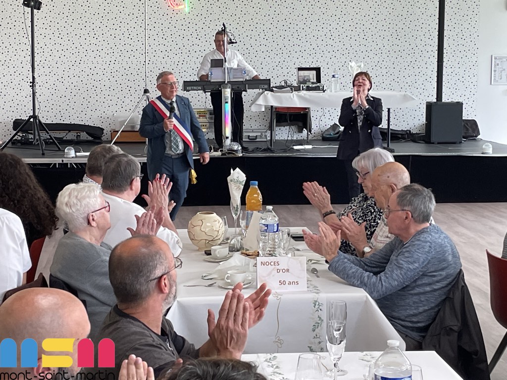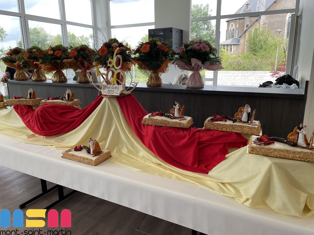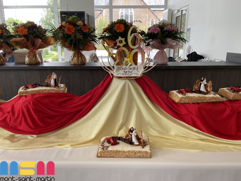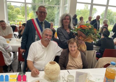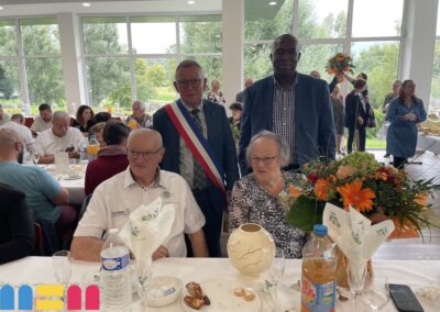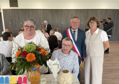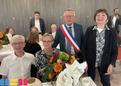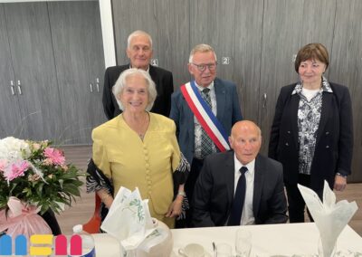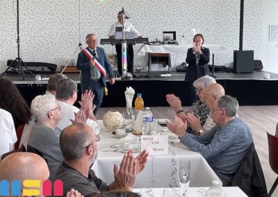 Après le mot de félicitations du Maire Serge De Carli, entouré des élus et du C.C.A.S de la ville, les couples jubilaires ont reçu un présent : un émaux et un bouquet de fleurs. La convivialité était à l’honneur, avec une ambiance musicale grâce à Mario, et des moments de partage entre les Jubilaires, leurs familles et leurs proches. Le public a eu également une pensée particulière pour Claudine Leclerc, dont c’était les dernières Jubilaires en tant qu’élue et adjointe au Maire.