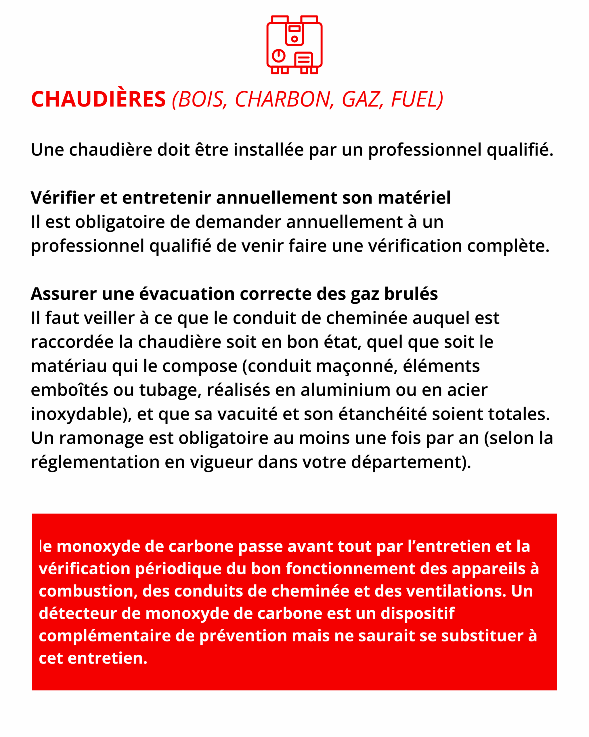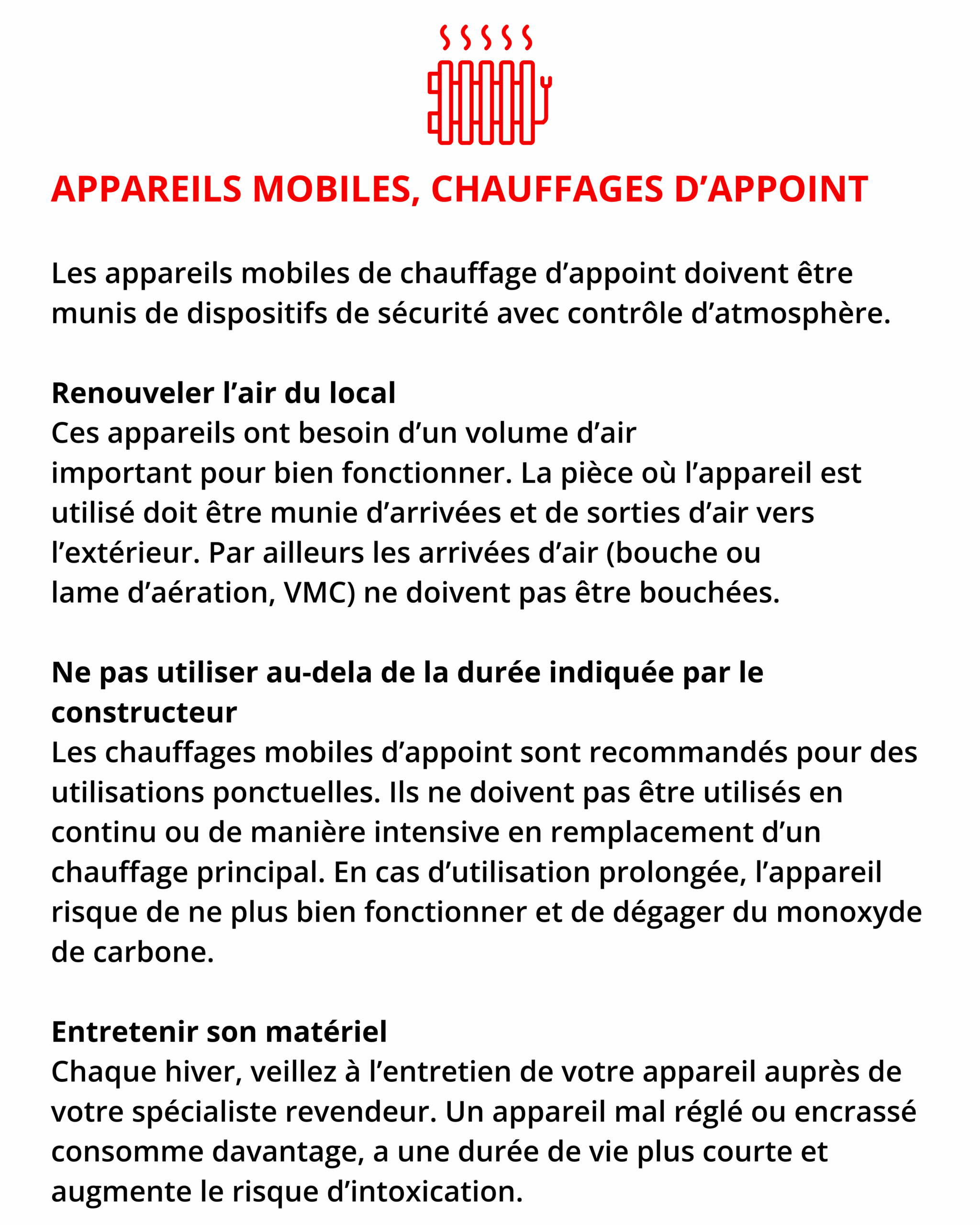 Face à ces accidents le plus souvent évitables, il est primordial de rappeler les bons gestes de prévention à mettre en pratique tout au long de l’hiver, que ce soit dans les habitations individuelles, les immeubles ou les espaces accueillant du public.