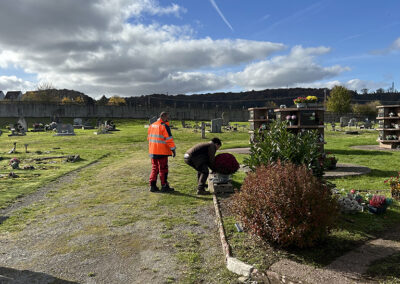 Depuis plusieurs semaines, les agents municipaux sont mobilisés dans les deux cimetières de Mont-Saint-Martin afin d’assurer la propreté et l’embellissement des lieux. Au programme : désherbage des allées, ramassage des feuilles mortes, dépôts de fleurs. L’objectif est de rendre le site accueillant et de permettre aux habitants — notamment le jour de la Toussaint — de venir se recueillir et d’honorer les défunts.