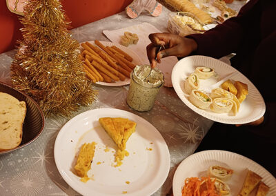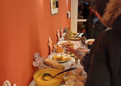 Les plats variés et faits maison, issus des traditions culinaires des différentes régions du monde ont régalé les grands et les petits dans une ambiance festive et chaleureuse. Un des enfants a d’ailleurs soufflé ses bougies sur un délicieux gâteau au chocolat. Une belle occasion aux personnes présentes de tisser des liens et de contribuer à la fraternité et au vivre-ensemble.