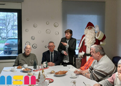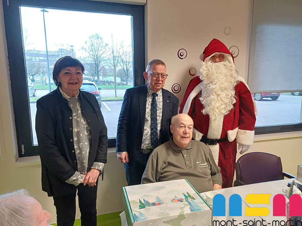 La magie de Noël a illuminé la journée du mercredi 17 décembre à l’EHPAD de la Clairière de Mont-Saint-Martin. Le père Noël, joué par Fabrice Alati, directeur du Centre Communal d’Action Sociale (CCAS), s’est rendu au près des résidents de l’EHPAD de la Clairière de Mont-Saint-Martin dans un moment de partage et de convivialité. La visite s’est déroulée en présence du maire Serge De Carli et de son adjointe Claudine Leclerc.